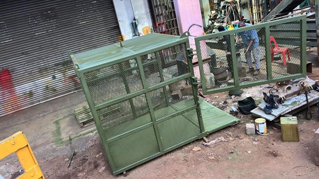 We fabricate crate pallet lifting cage here in Puchong, Malaysia.
